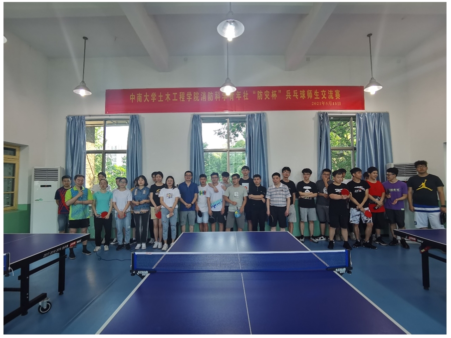 2021年5月15日上午9:00,威廉希尔消防工程系第八届“防灾杯”乒乓球师生交流赛于威廉希尔工会铁道教职工活动中心拉开序幕。为加强师生专业交流,丰富师生课余生活,在我国第13个防灾减灾日到来之际,消防科学青年社组织策划并主办了本届乒乓球师生交流赛。比赛活动得到威廉希尔的大力支持。参加本届乒乓球大赛的有威廉希尔副经理易亮老师,消防工程系赵望达、申永江、王飞跃老师,威廉希尔辅导员、研防灾党支部书记杨涛老师,以及威廉希尔工会委员梁杨勇老师。参加员工包括消防工程系部分本科生、硕士研究生以及博士研究生。比赛项目包括男子单打、女子单打、男女混双以及颠球接力(趣味比赛)。